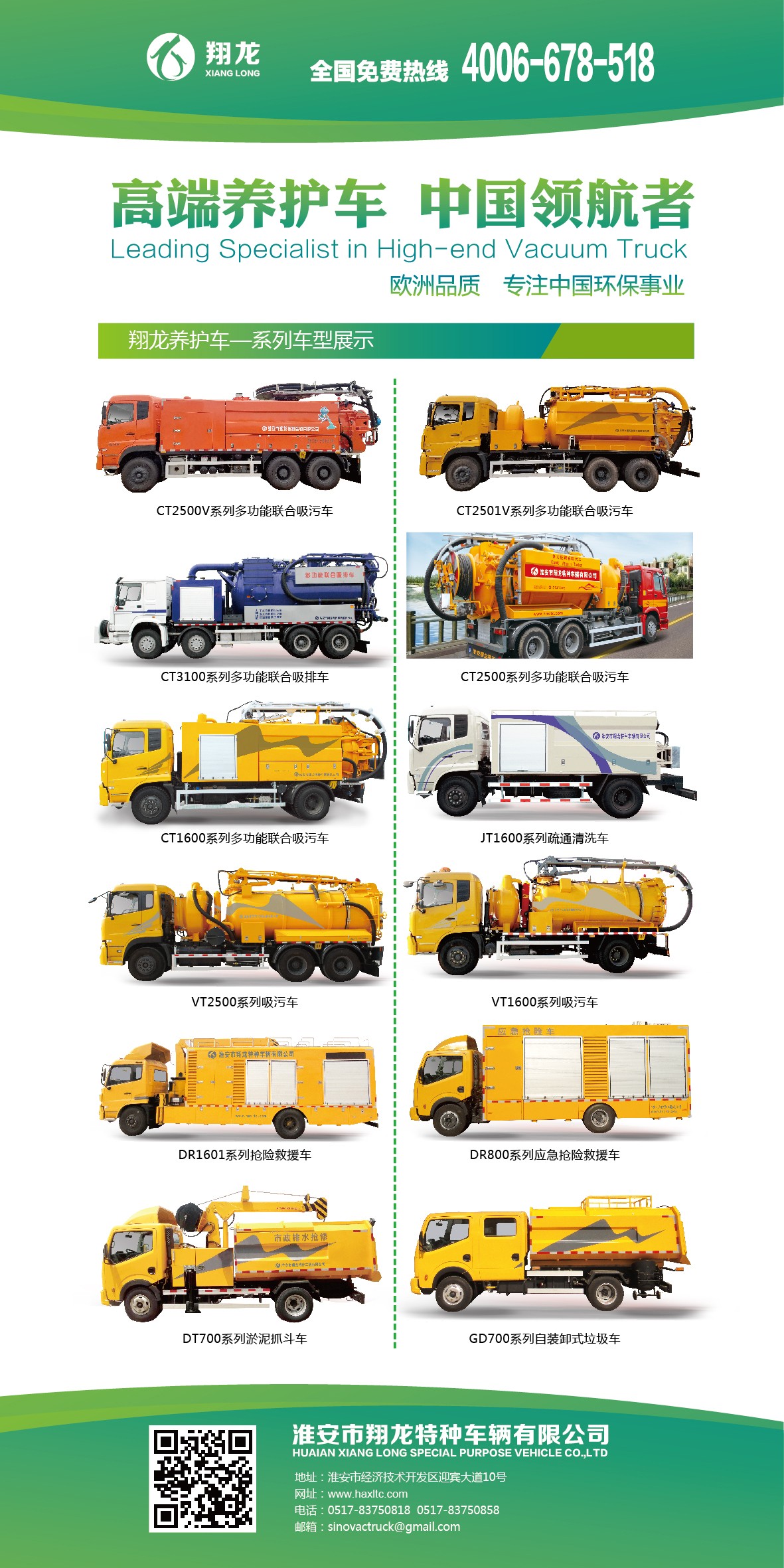 公司秉承優良的品牌管理理念,致力于為客戶提供全系列、高品質的專用車輛。產品主要涵蓋:多功能聯合吸污車系列、多功能排澇搶險車系列、多功能粉粒物料吸排車系列、下水道疏通車系列、吸污車系列、電源搶險車系列、淤泥抓斗車系列、淤泥運輸車系列等車型。產品不僅暢銷國內各大中城市和地區,還遠銷中東、澳洲、非洲、東南亞等國家和地區。