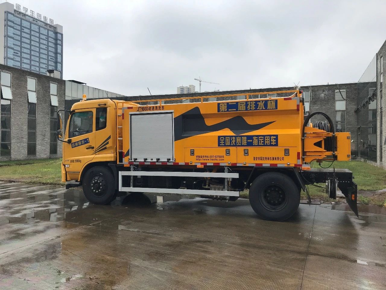 翔龍公司JT1600型下水道疏通車被組委會選定為決賽階段唯一指定用車,是經過大賽組委會和各省水協的層層篩選及嚴格考察后決定的。同時為保障本次比賽的順利進行,翔龍公司先后共投入500多萬元,提供七輛下水管道疏通車作為決賽用車,并派出多名技術人員前往部分省級比賽和本次決賽現場予以技術服務支持,為本次大賽的圓滿舉辦貢獻了一份力量。