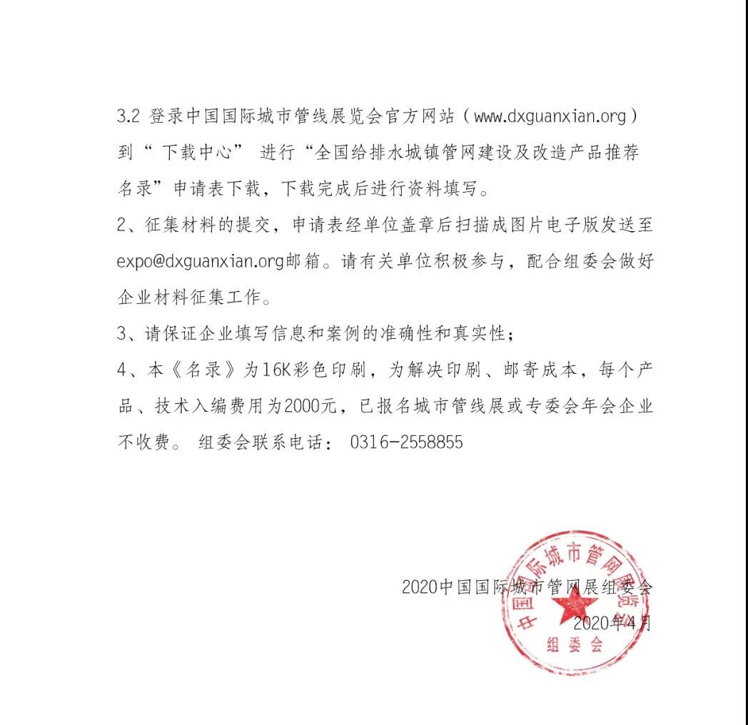 針對目前國內外疫情情況較嚴峻,為響應國家防疫政策,中國國際城市管網展組委會特此聯合推出本次征集活動,推動各相關單位協同發展。