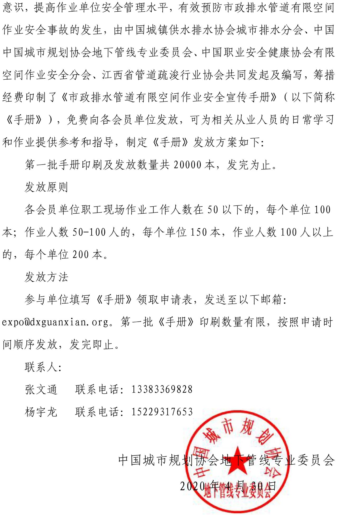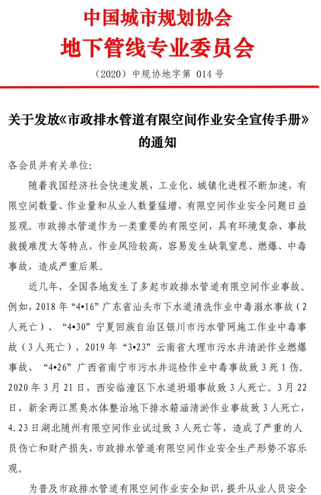 協會關于發放有限空間安全作業宣傳手冊的通知