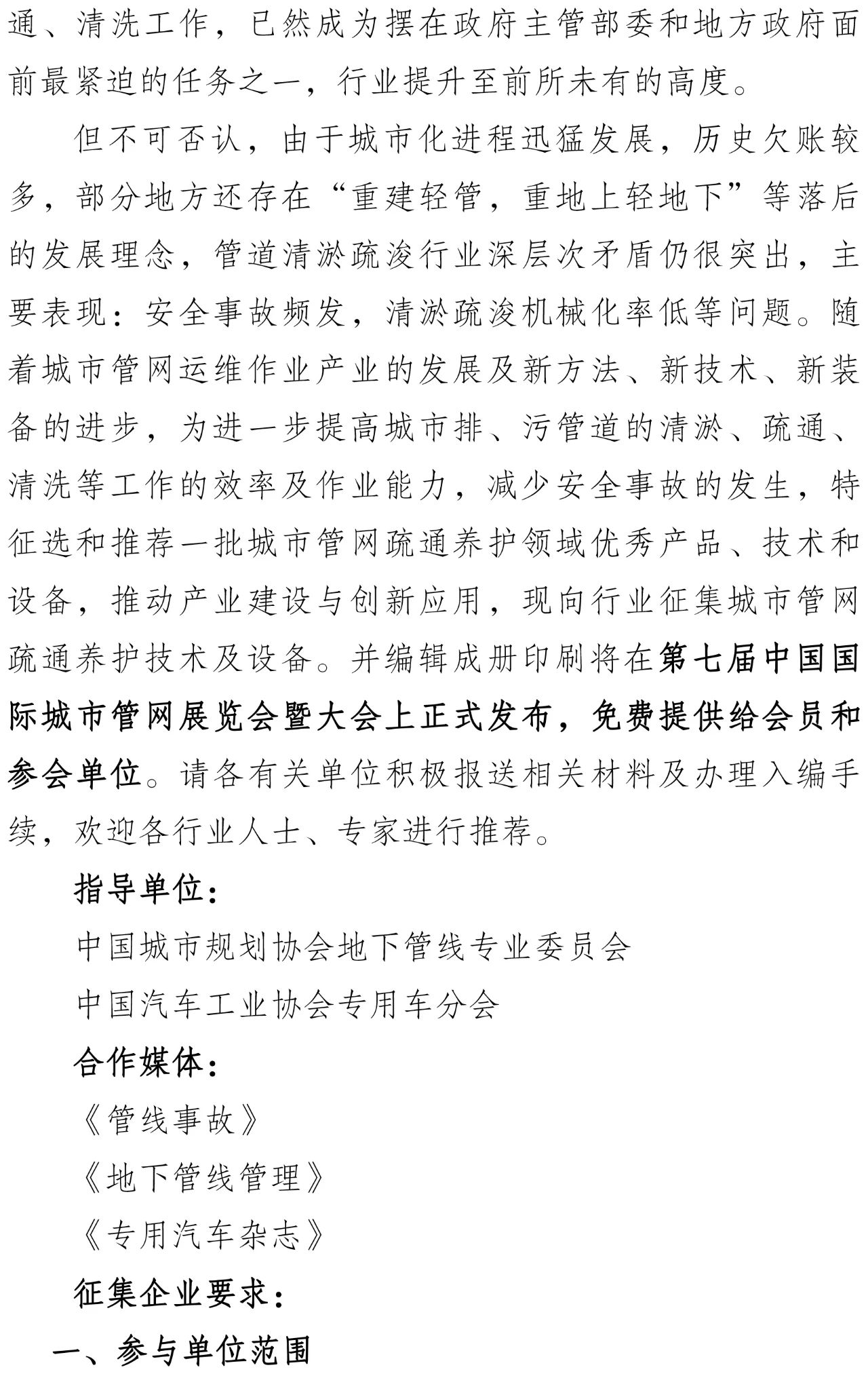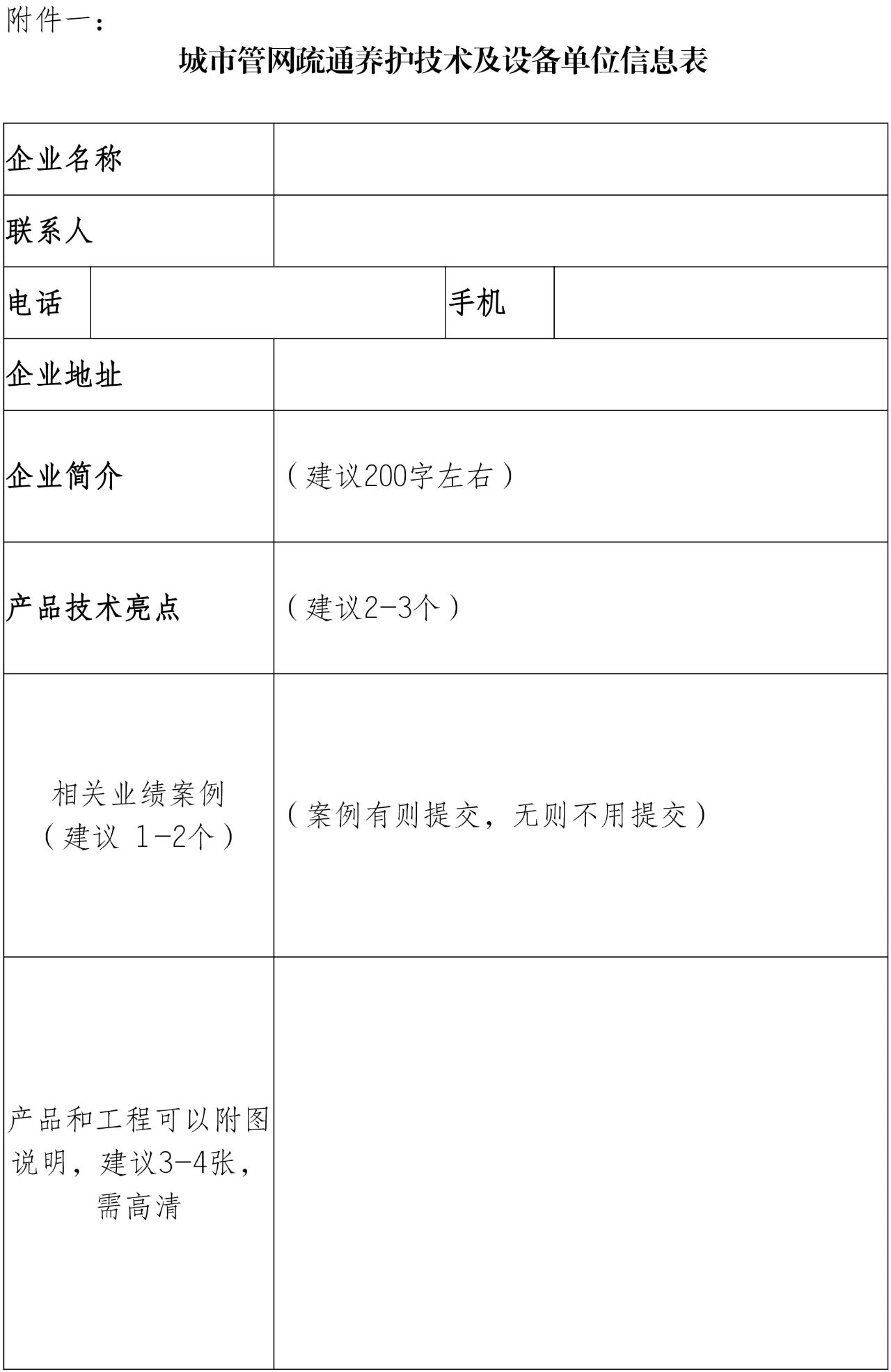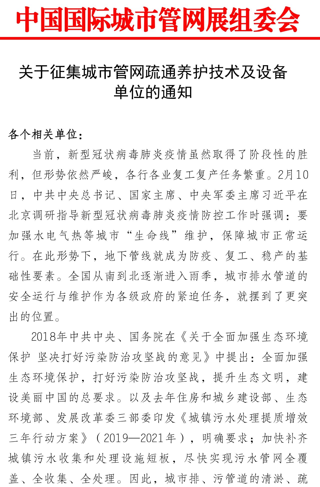 通知 || 關于征集城市管網疏通養護技術及設備單位的通知