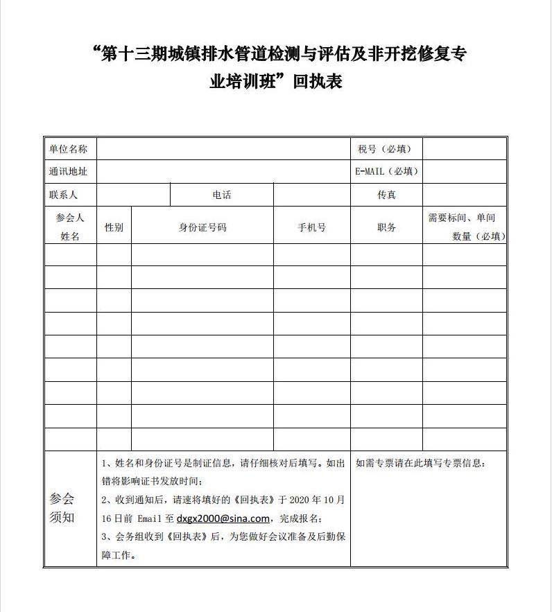 請(qǐng)將回執(zhí)表填好后,于2020年10月16日前發(fā)至 dxgx2000@sina.com郵箱。