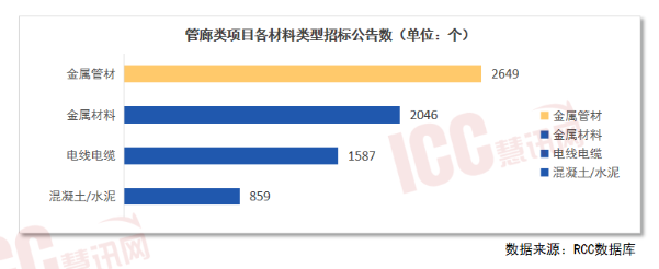 RCC數(shù)據(jù)庫(kù)數(shù)據(jù)顯示,從2013年到現(xiàn)在,金屬管材類材料的招標(biāo)數(shù)量最多。隨著城市更新行動(dòng)的推進(jìn),地下管廊產(chǎn)業(yè)鏈上的相關(guān)企業(yè)將同步受益。上游原材料企業(yè),如水泥、鋼材、砂石等;中游管廊設(shè)計(jì)、施工建設(shè)和運(yùn)維企業(yè),如宏潤(rùn)建設(shè)、上海隧道工程、華東建設(shè);下游城市基礎(chǔ)設(shè)施企業(yè),如上上電纜、聯(lián)塑管材、友發(fā)管材等都將受益。未來(lái),隨著城鄉(xiāng)發(fā)展對(duì)基礎(chǔ)設(shè)施的要求提高,地下綜合管廊將成為城市基礎(chǔ)設(shè)施建設(shè)的趨勢(shì)之一。