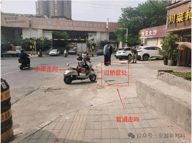鄭州市新鄭路(南關北街-紫荊山路)路段DN400供水管道位于保護區范圍內,使用年限長且早期使用的是黃河水,水質硬度大,管內結瘤物多。本次施工長度約124米,現場勘察該給水管線沿途有6處彎角處理,最大角度達50°,施工難度極大。