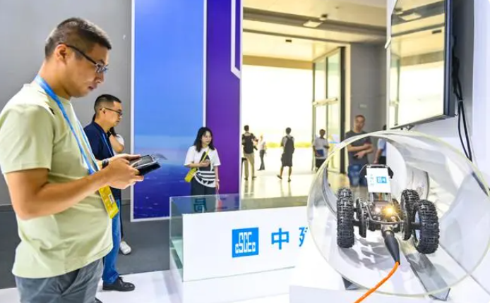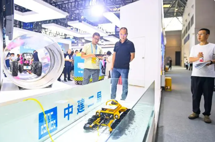 ▲9月4日,2023中國國際智能產業博覽會現場,中建二局工作人員正在展示管道非開挖智能檢測修復技術。記者 齊嵐森 攝