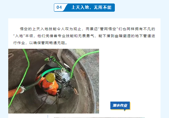 悟空有讓其及時回歸正念的緊箍咒,景邁環境也引進了“安全緊箍咒”--智能安全帽,用科技助力安全作業。它具備脫帽報警、跌落報警、危險救援和軌跡回放等功能,時刻提醒著佩戴此智能安全帽的“管網悟空”對于安全不能有絲毫懈怠。