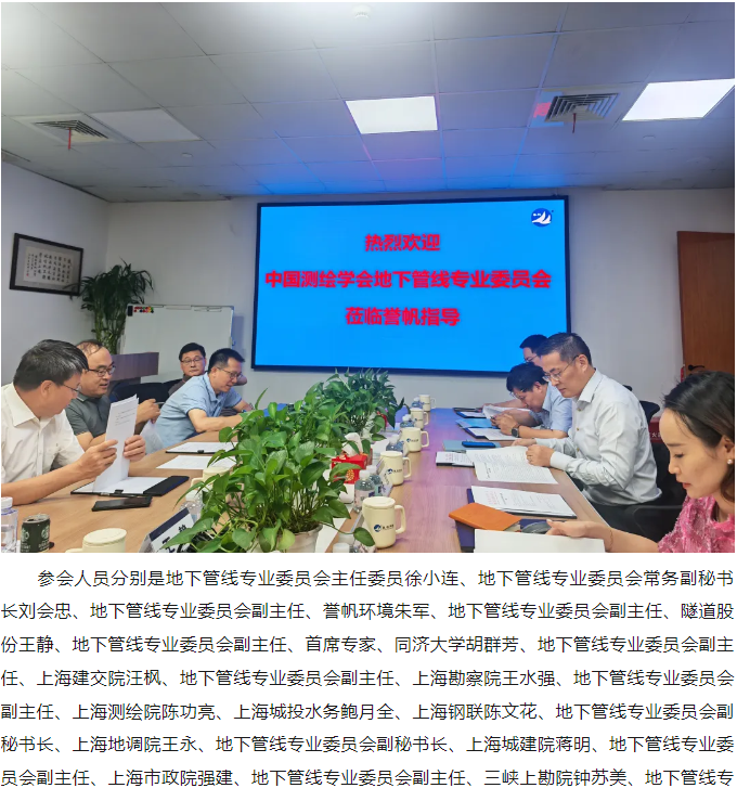 為推動(dòng)地下管線行業(yè)發(fā)展,落實(shí)中國(guó)測(cè)繪學(xué)會(huì)地下管線專業(yè)委員會(huì)(簡(jiǎn)稱“地下管線專業(yè)專委會(huì)”)《2025年工作計(jì)劃》,加強(qiáng)會(huì)員單位的交流與合作,7月24日,“2025半年度工作座談會(huì)暨走進(jìn)會(huì)員(上海站)活動(dòng)”會(huì)議在上海譽(yù)帆環(huán)境科技股份有限公司會(huì)議室召開(kāi)。